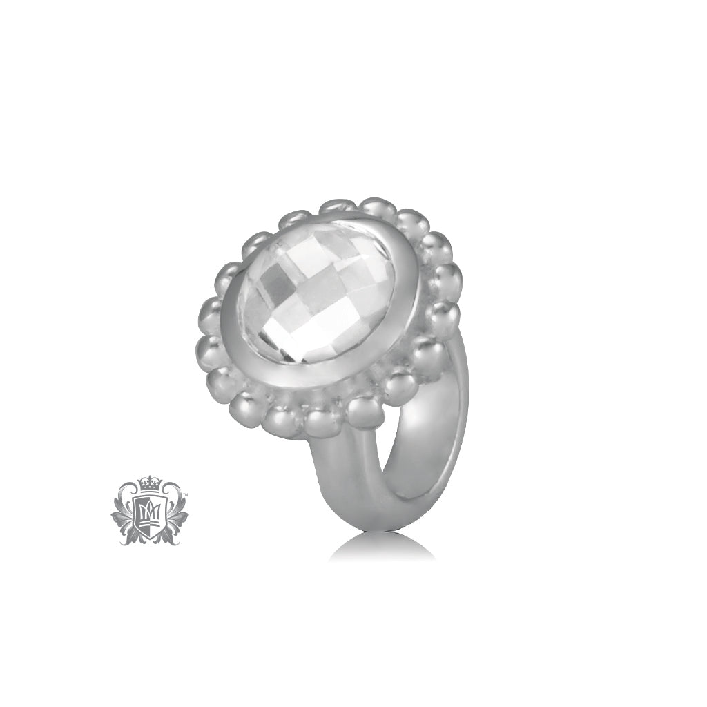 This elegant Embrace charm from the Embrace Collection by Metalsmiths Sterling is intended to fit snugly around an Embrace wrap bracelet or necklace, but may also be worn loosely as a charm or pendant on a chain necklace or bracelet. This Embrace charm features a checker cut high intensity cubic: accented by a circular motif. The internal diameter is about 5mm.