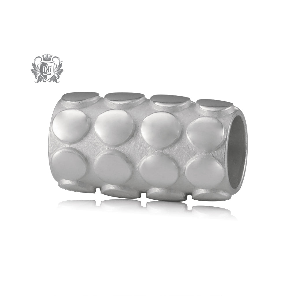 This piece features a sleek geometric circular pattern on a brushed sterling silver background.