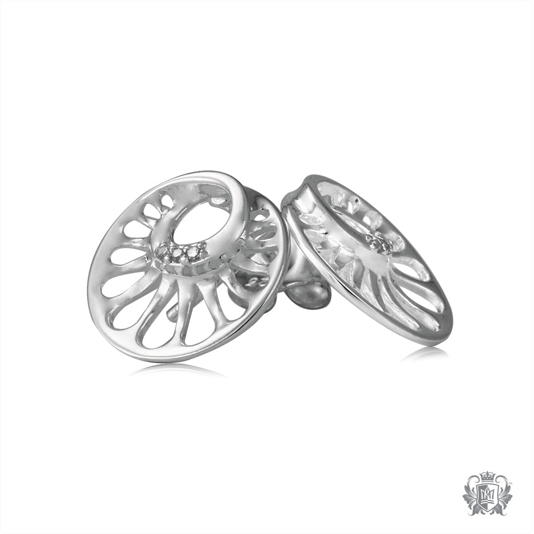 This stunning pair of sterling silver 10mm diameter circle swirl stud earrings with 3 diamonds on each earring, all 6 diamonds totalling 0.02 ctw, is from the Metalsmiths Sterling™ Signature Collection.