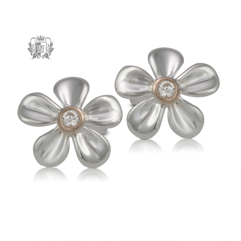 Fun, floral and with a touch of sparkle, these perfectly pretty stud earrings, exclusively from metalsmiths Sterling feature a high intensity cubic centre surrounded by a rose gold dipped accent.