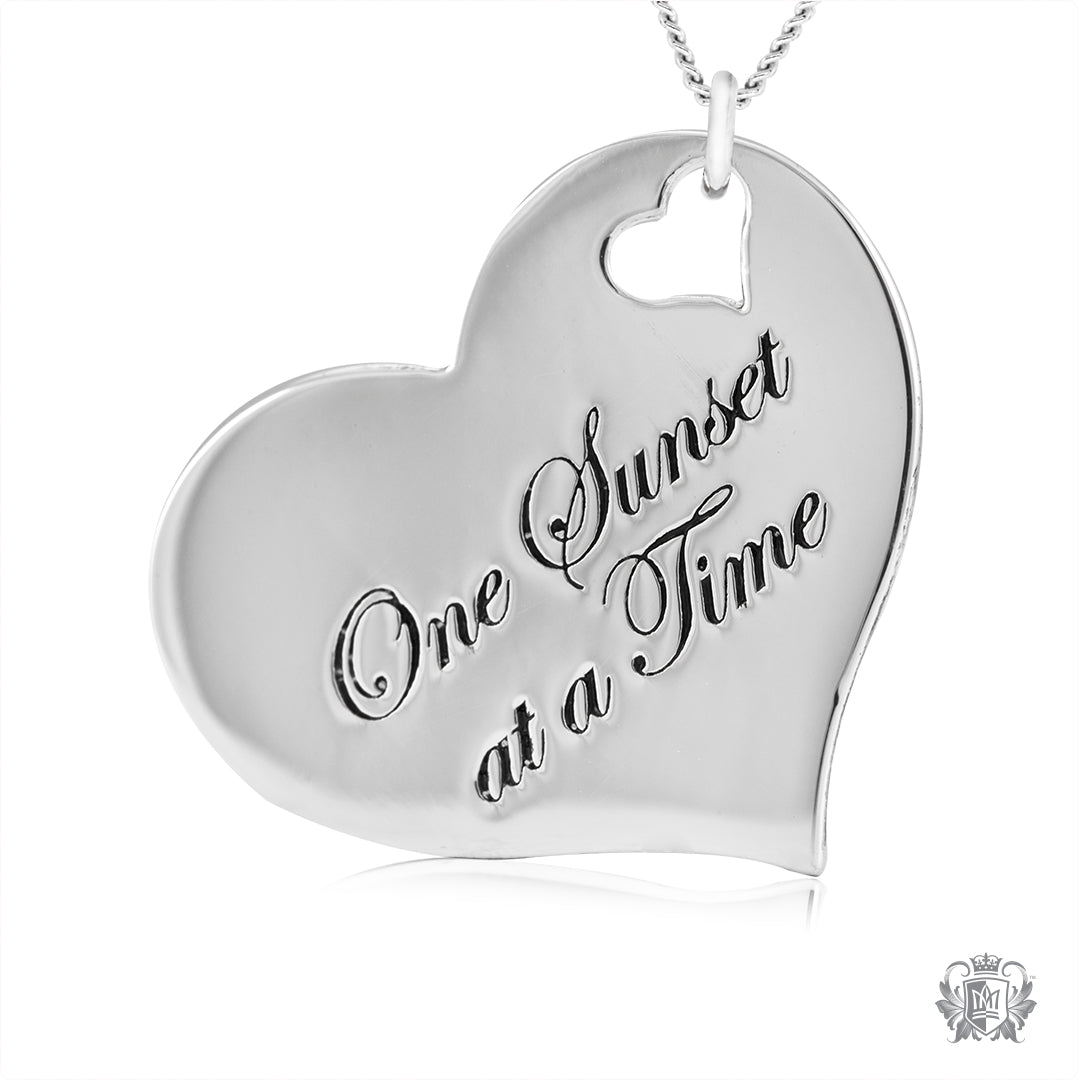 A simple, meaningful and inspirational words and quotes engraved on this heart pendant.  Beautiful personalized necklace or charm for you or as a thoughtful gift.