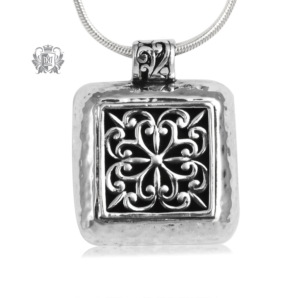This dramatically scrolled and hammered pendant from Panos K designs, exclusive to Metalsmiths Sterling measures 25mm in total height.