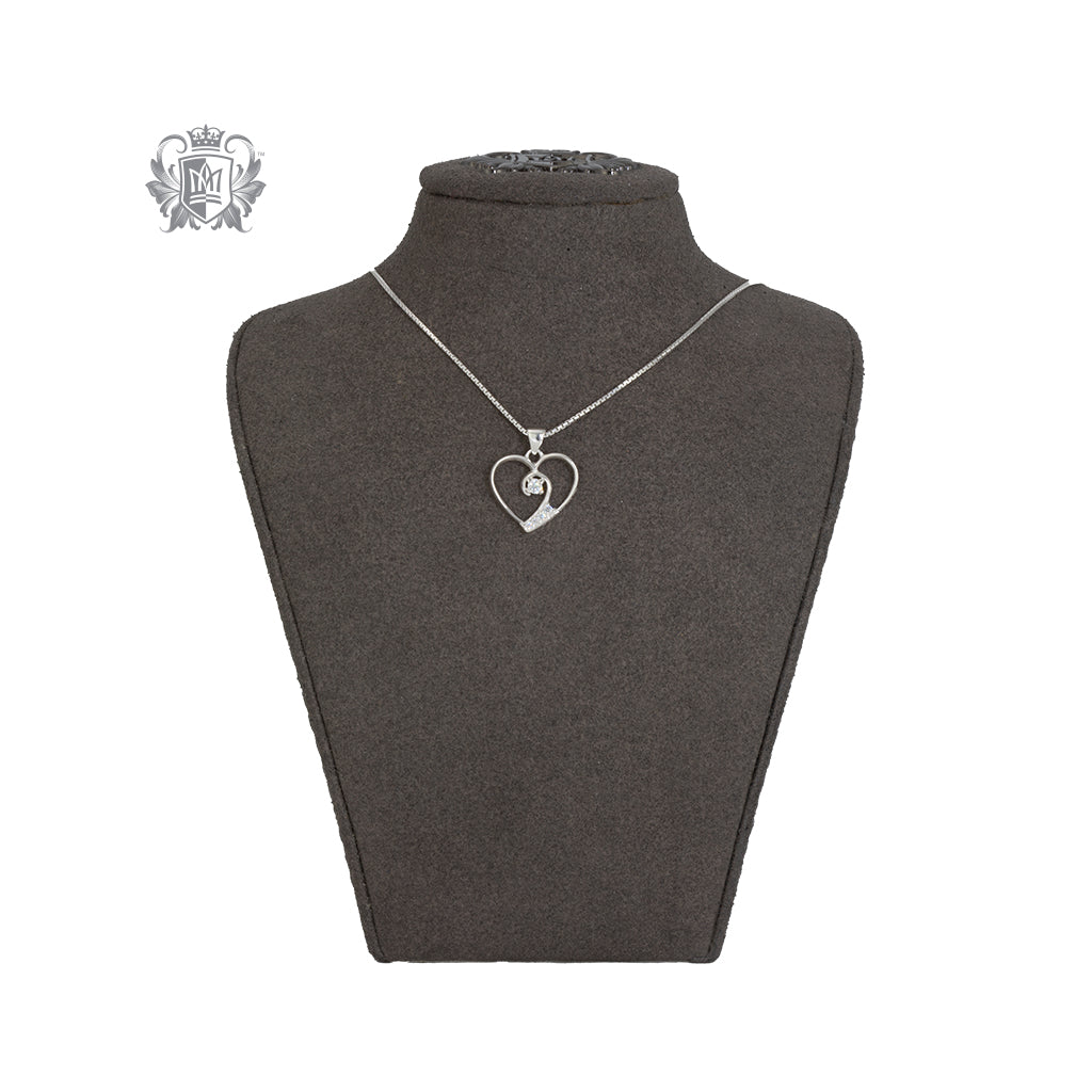 A burst of dazzling light issues from the high intensity cubic stone at the centre of this happy heart pendant from the Signature Collection by Metalsmiths Sterling.