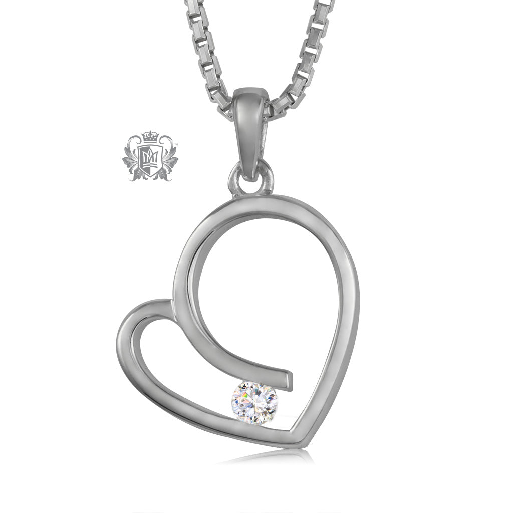 A sleekly rounded heart pendant from Metalsmiths Sterling featuring a dazzling high intensity cubic accent.