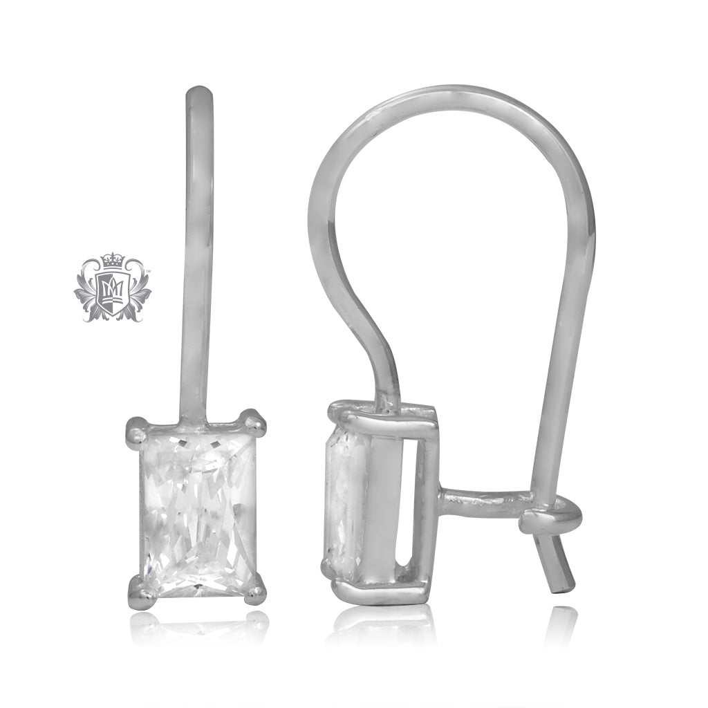 An elegant classic, these emerald cut, high intensity cubic gemstone prong set hanger earrings, exclusively from Metalsmiths Sterling add a touch of sublime sparkle.