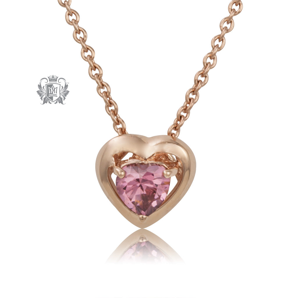A sweet and sparkly, perfectly pink pendant exclusively from Metalsmiths Sterling: this rose gold dipped necklace features a heart shaped slider pendant with a prong set high intensity pink cubic stone.