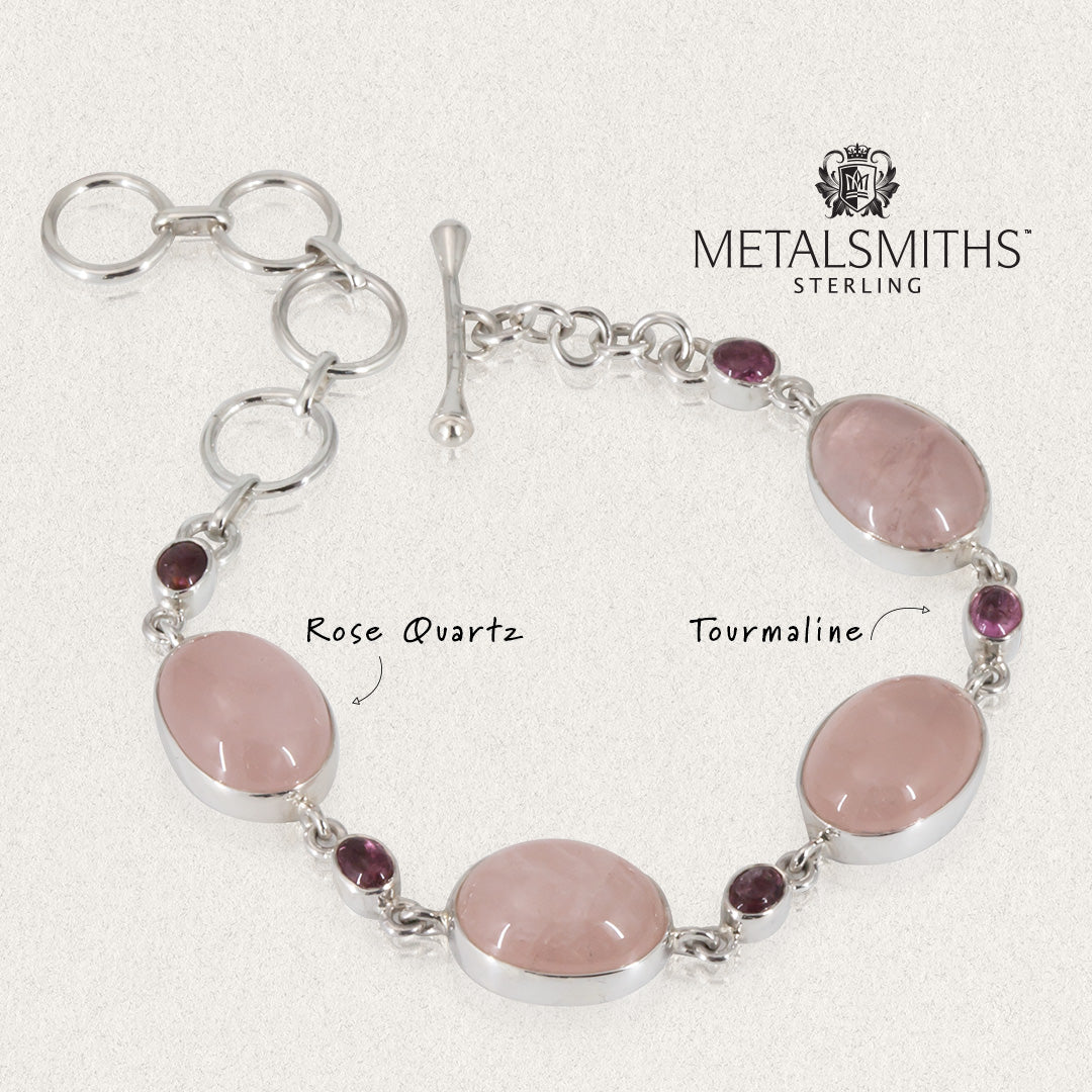 Ethereal and soft, this toggle bracelet exclusive to Metalsmiths Sterling features rose quartz and tourmaline gemstones.