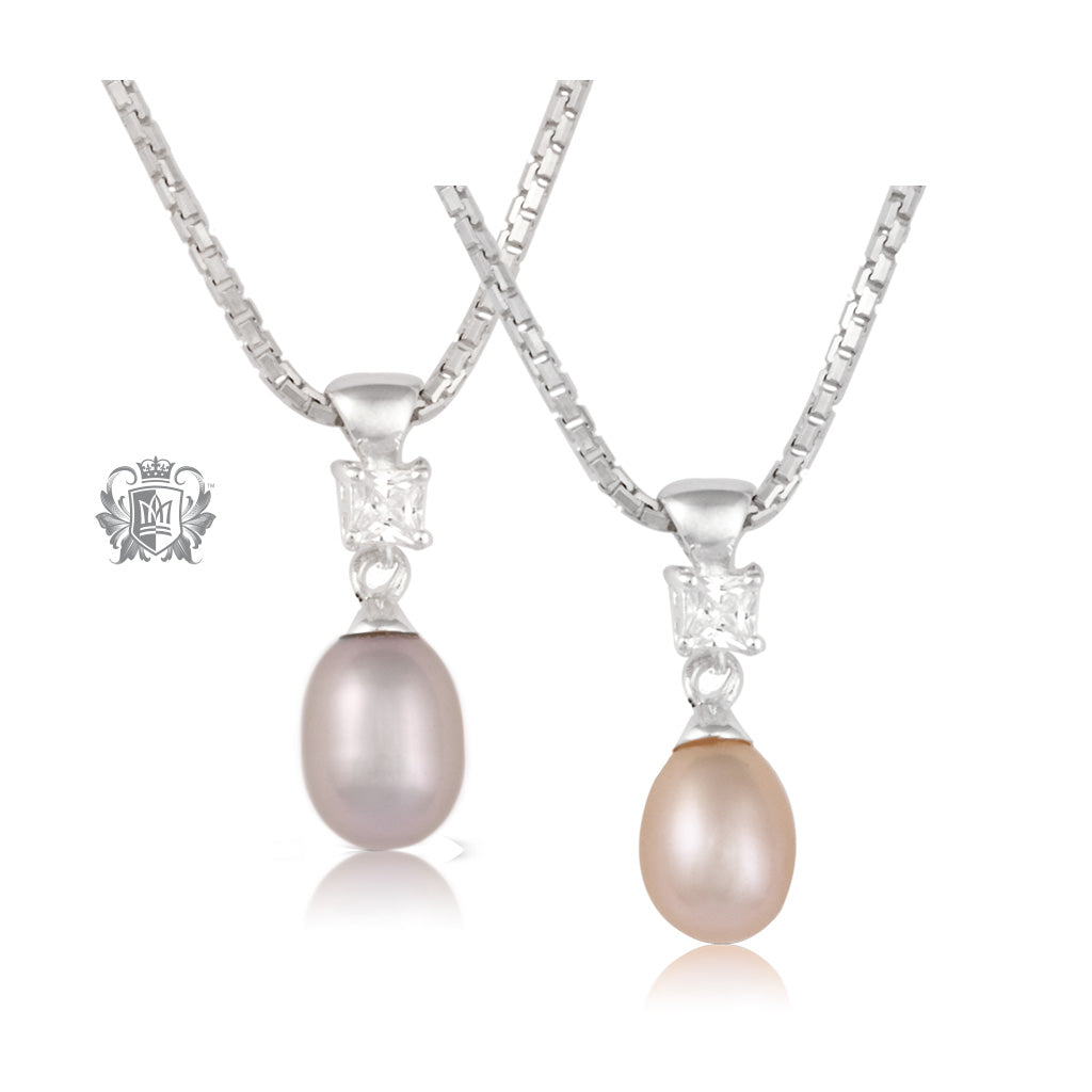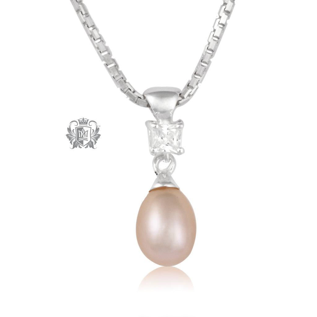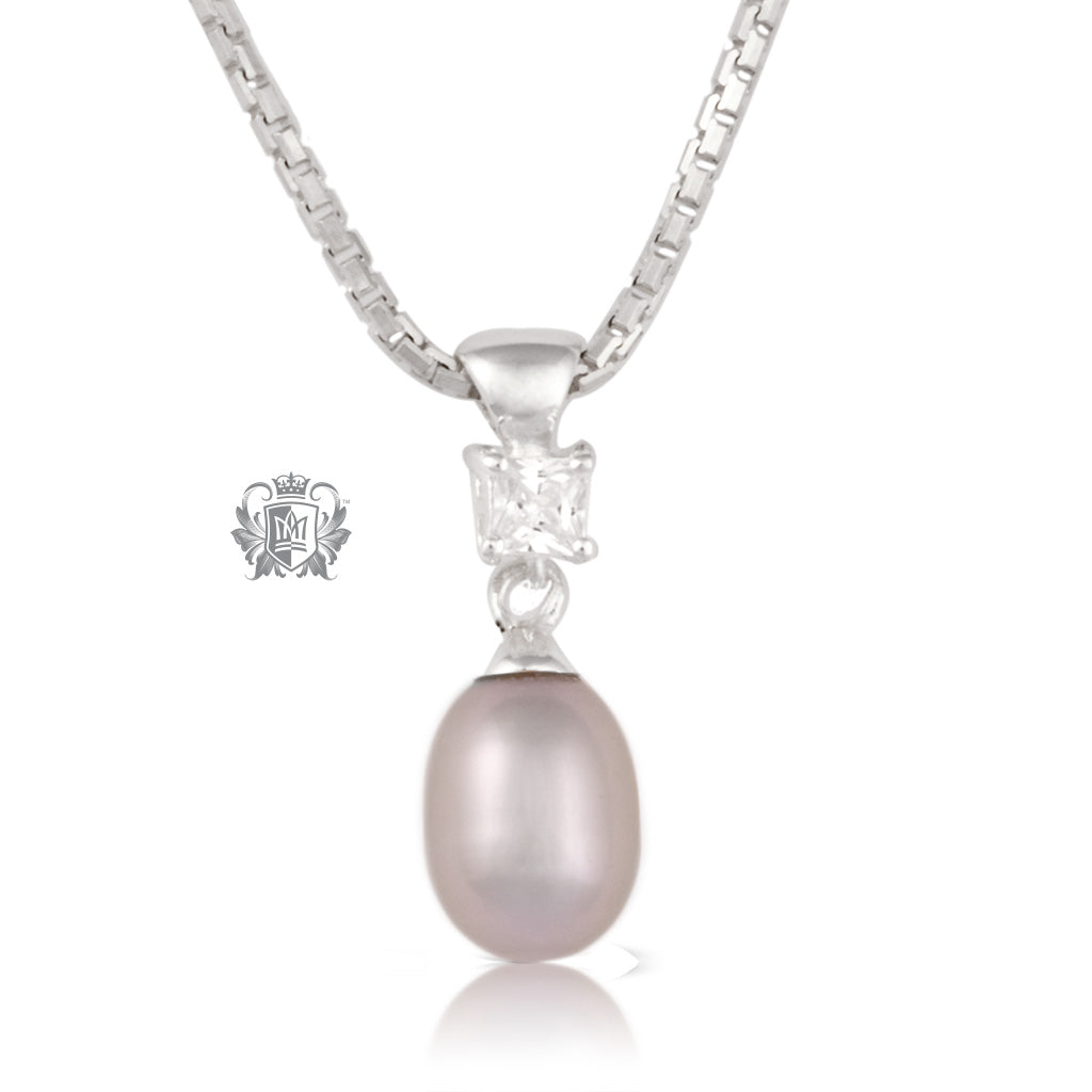 A pearl drop accented with a square high intensity cubic in this pendant from the Metalsmiths Sterling Signature Collection.